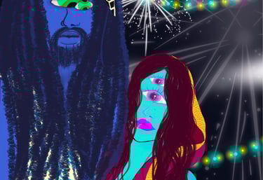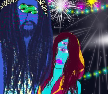 My work is inspired by vivid color, emotional expression, and bold design, with a love for neon lighting, modern illustration, and intimate storytelling. I create both original artwork and custom commissions, working closely with clients to make pieces that feel personal, expressive, and uniquely theirs. When I'm not making art I'm chilling with my cats, chasing good food, or going to music festivals.