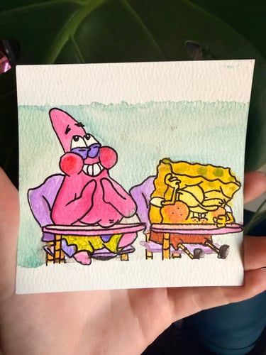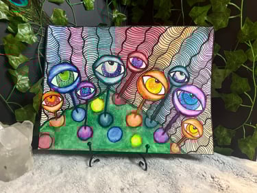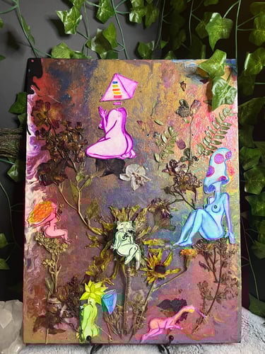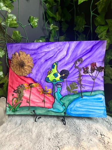 Made with Acrylic or Watercolor Paints with the occasional dried pressed flower added
